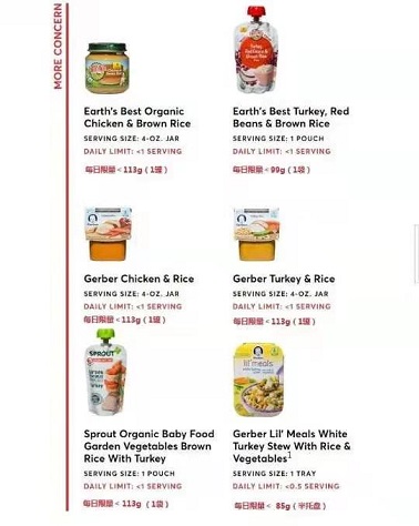 這份報(bào)告披露的產(chǎn)品中,不乏有嘉寶(Gerber)、地球最好(Earth's Best)、禧貝(Happybaby) 等多款在中國(guó)很暢銷的輔食品牌。