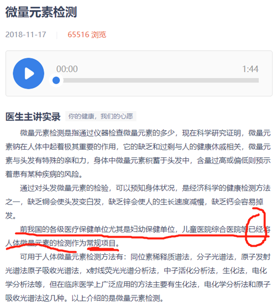 這里面有句話,也就是我劃線的這句話,非常的可怕,說(shuō)的是常規(guī)檢查,而非針對(duì)性的檢查,注意看時(shí)間,這是2018年的實(shí)錄。這也是為什么衛(wèi)健委會(huì)在2021年再次發(fā)布公文,叫停微量元素檢查的原因。