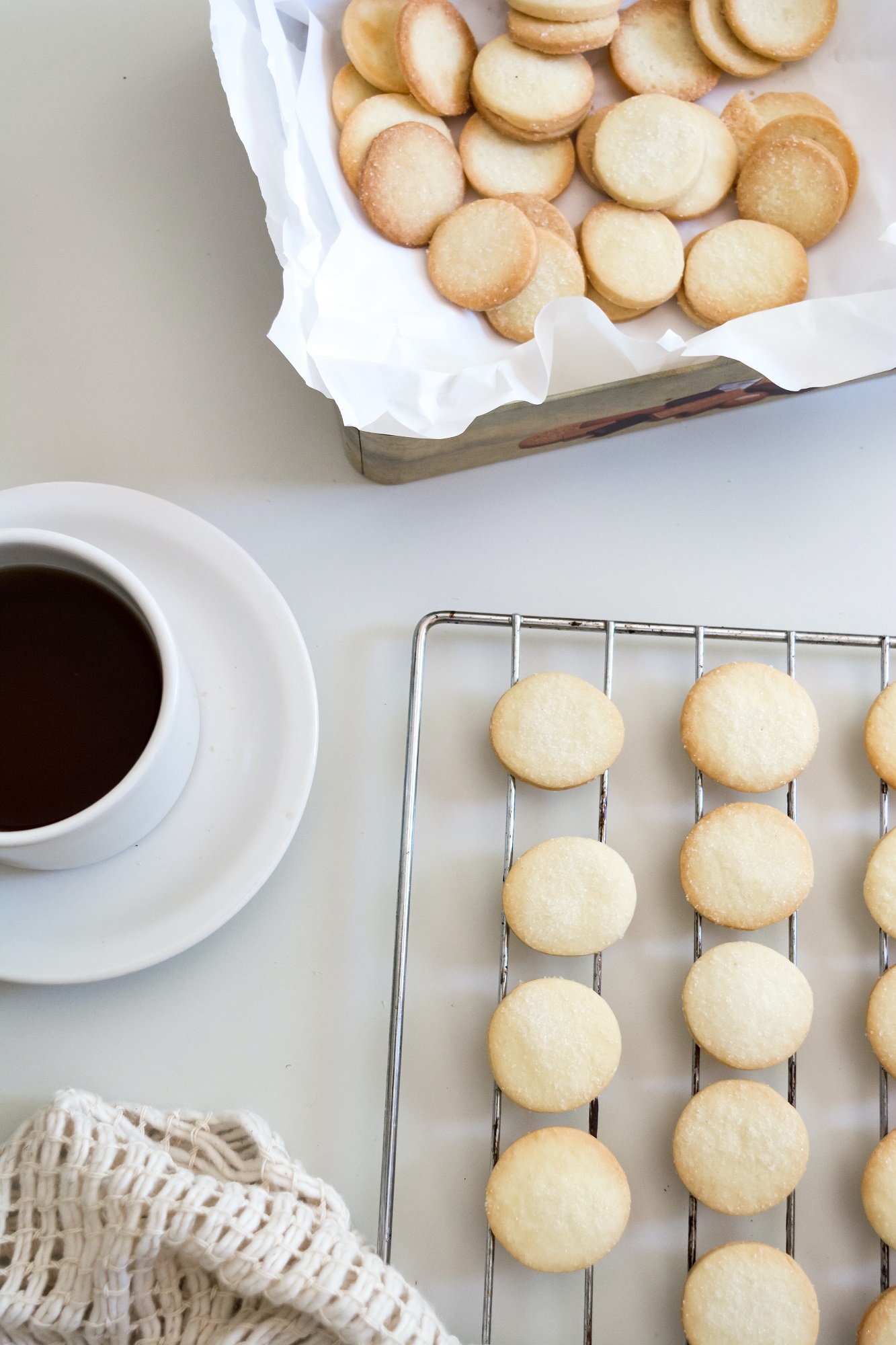 4、底鍋中抹油,將餅干放入平底鍋內(nèi),開小火,中途多翻幾次面,讓餅干均勻受熱,烙至兩面金黃即可。