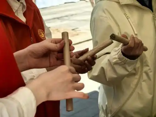 艾灸條DIY區(qū)被圍得水泄不通。同學(xué)們卷艾絨卷得不亦樂乎,化身手工達人信心滿滿地完成自己的作品,“做完送給媽媽,她說這是最潮的‘養(yǎng)生神器’!”