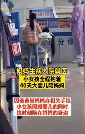 小女孩抱40天大嬰兒陪媽媽住院,網(wǎng)友:中國(guó)好姐姐