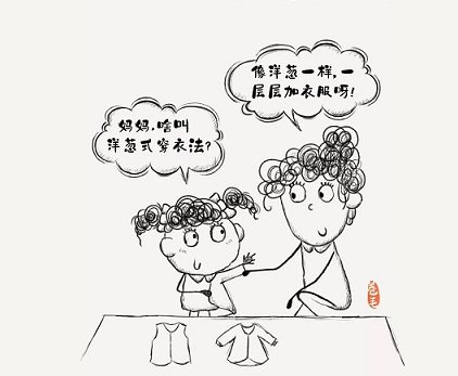 洋蔥式穿衣法最大的好處就是能夠根據(jù)氣溫的變化和需求一層層地隨時(shí)增減。不會(huì)突然出現(xiàn)溫差,造成孩子感冒。