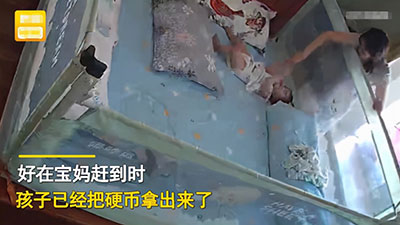 硬幣很快導致寶寶的喉嚨被卡住,因為呼吸困難,所以發(fā)出了令人揪心的聲音。就在這千鈞一發(fā)之際,還好孩子的媽媽聽到了,第一時間來到了臥室里面查看情況。幸運的是,這個時候,孩子已經自己把硬幣給拿了出來,并沒有釀成多大的事故。