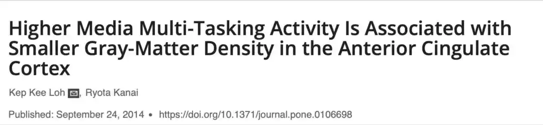 ?、貶igher media multi-tasking activity is associated with smaller gray-matter density in the anterior cingulate cortex. Plos one, 9(9), e106698.