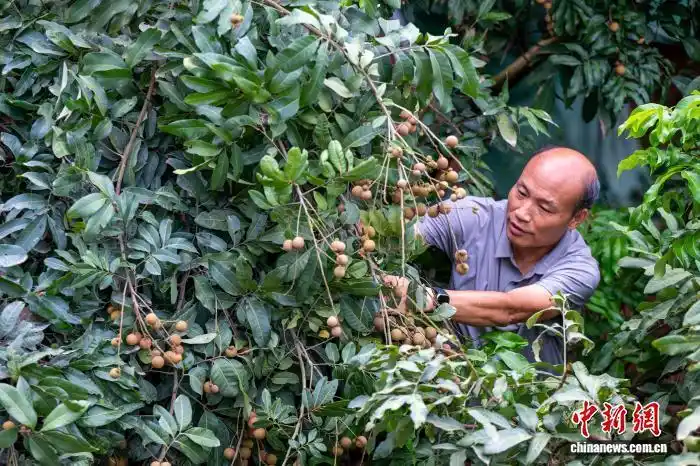資料圖:廣西梧州市長洲區(qū)興龍街道睦鄰組龍眼采摘園內(nèi),游客穿梭樹下,親手采摘龍眼,樂享鄉(xiāng)村休閑時光。何華文 攝