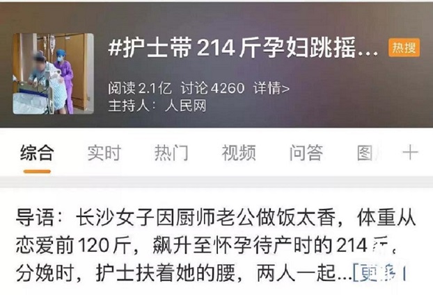 近日,湖南長沙#護士帶214斤孕婦跳搖擺舞助產#沖上熱搜,引發(fā)眾多網友的關注熱議