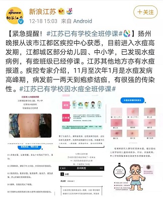 進(jìn)入12月以來,江蘇揚(yáng)州、遼寧鞍山、黑龍江哈爾濱等多地均發(fā)現(xiàn)有中小學(xué)、幼兒園有學(xué)生感染水痘。
