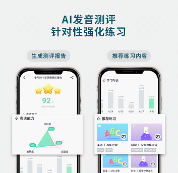 每一次的英語陪練,系統(tǒng)會在手機端上的豹豹龍APP自動生成測評報告,里面有詳細的語音記錄,所有練過的單詞都可以點擊播放,方便孩子自查,家長對孩子的學習情況也能了如指掌。另一方面,對于孩子練習過程中存在的問題,豹豹龍能夠針對性地推薦練習內(nèi)容,為孩子進行強化訓練。