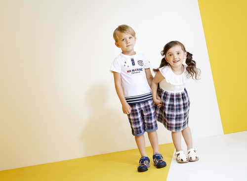 清爽夏日里的格子夏裝與干凈白T恤,搭配上同色系的涼鞋,給寶寶一個(gè)清涼舒爽的夏日體驗(yàn)。