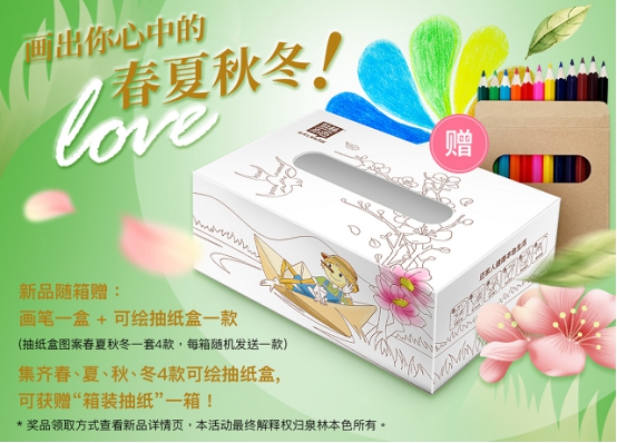 配合親子的互動玩法,泉林本色還推出了“集齊一套四季紙盒兌換一箱精美抽紙”的誠意活動,用戶可通過上傳自己彩繪作品獲得獎勵。目前全球僅在泉林本色京東旗艦店有售,首發(fā)數(shù)量有限,喜歡的一定盡快前往購買。