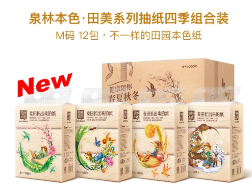4月18日,在京東APP首頁品牌秒殺板塊,一款手繪卡通外包裝的本色衛(wèi)生抽紙格外引人注目。據(jù)悉,這款別開生面的衛(wèi)生紙是泉林本色京東自營店首發(fā)的“四季系列”新品。該系列產(chǎn)品主打環(huán)保、實用和趣味性。一經(jīng)上市就受到大批寶媽和居家人士的喜愛。