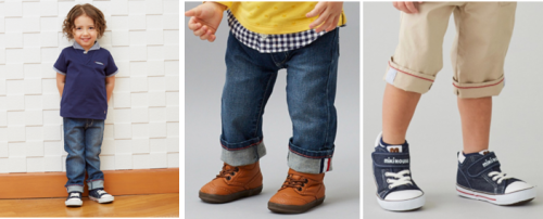 不管是搭配牛仔褲還是米色7分褲,都可以輕松HOLD,穿上之后帥氣逼人。鞋子的選擇采用的是MIKI HOUSE人氣海軍藍帆布鞋,時尚第一步讓我們從鞋子開始吧。從“腳”開始,給你的寶寶最認真專業(yè)的關(guān)愛,讓他們從學(xué)步到奔跑,每一步都安全舒適。