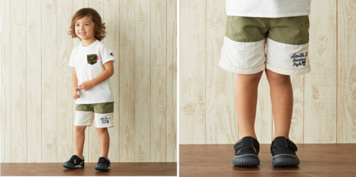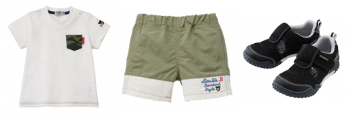 帶有迷彩口袋的白色T恤搭配同色系短褲,整體風(fēng)格帥氣又不失設(shè)計感,再來一雙炫酷的黑色網(wǎng)面涼鞋,寶寶穿上之后神氣活現(xiàn),走路都能兜風(fēng)。