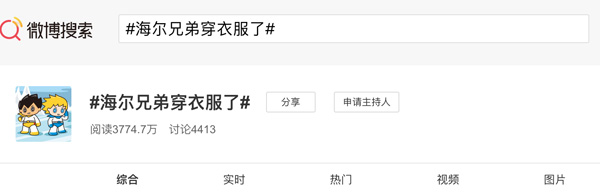 新動畫下部開播伊始迅速累積超高人氣,首播當(dāng)天,#海爾兄弟#、#海爾兄弟穿衣服了#兩個話題接連登上新浪微博熱搜排行榜,分別位列第三、第六位,億萬網(wǎng)民的爭相熱議見證了《海爾兄弟宇宙大冒險》與海爾兄弟IP熱度的再次爆棚。