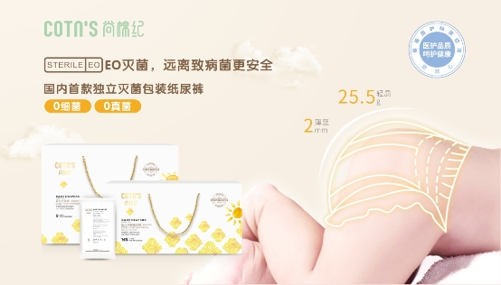奧美生活此次參展,推出了極具品牌特色的“中國智造”系列產(chǎn)品。像安織愛乳絲親膚紙尿褲就被譽(yù)為行業(yè)首款生態(tài)抑菌紙尿褲,其開創(chuàng)性的利用純天然乳絲材質(zhì)做紙尿褲的面層。因乳絲呈弱酸性,可抑制尿液中的微生物繁殖,減低紙尿褲使用后發(fā)生的異味,進(jìn)而有助減少紅屁屁的發(fā)生。還有尚棉紀(jì)的EO滅菌系列產(chǎn)品,讓產(chǎn)品真正達(dá)到了0細(xì)菌狀態(tài)。這全源于流淌于奧美生活品牌血液里的品牌基因——醫(yī)護(hù)品質(zhì)。