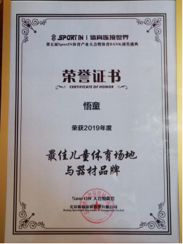 第五屆SportIN大會悟童品牌榮獲“2019年度最佳兒童體育場地與器材品牌”獎