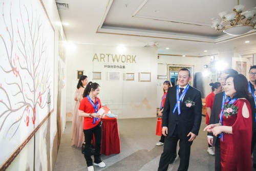 兩邊的展覽墻,一邊是同遠(yuǎn)近幾年獲獎(jiǎng)的證書、獎(jiǎng)杯和獎(jiǎng)牌,另一邊則別出心裁的設(shè)計(jì)了一面“結(jié)繩記事”:20個(gè)節(jié)點(diǎn),每一個(gè)節(jié)點(diǎn)都是故事。同遠(yuǎn)集團(tuán)董事長(zhǎng)徐忠先生和名譽(yù)董事長(zhǎng)陳柯嘉女士以及一眾領(lǐng)導(dǎo)回味著同遠(yuǎn)過(guò)去的故事,并合影留念。