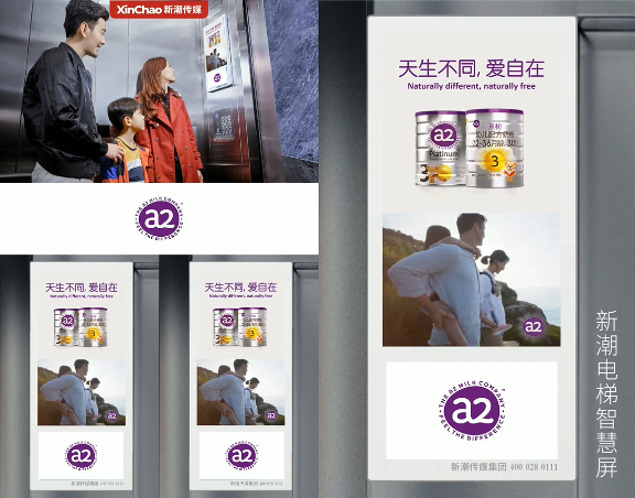 近日,a2至初奶粉攜手新潮傳媒,登陸北京、上海、廣州、深圳、天津、杭州、重慶、南京、武漢、成都、西安等全國核心城市的新潮電梯智慧屏,讓“來自特別甄選的奶牛,助力寶寶健康成長(zhǎng)”。