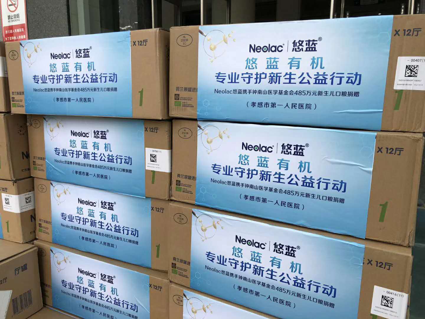 努力終究是有回報的,2月18日,900聽共計75件悠藍(lán)嬰幼兒配方奶粉,經(jīng)過程峰及其團(tuán)隊,先后送達(dá)孝感市中醫(yī)院、孝感市第一人民醫(yī)院。