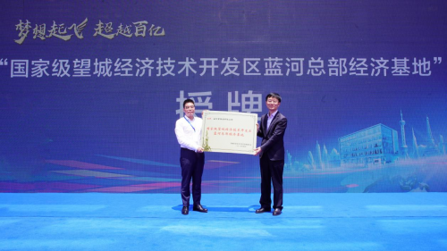 (望城經開區(qū)黨工委書記周剴向藍河總部經濟基地授牌)