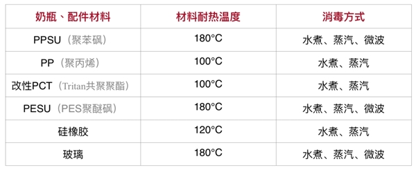 圖:愛得利奶瓶&配件材料耐溫表
