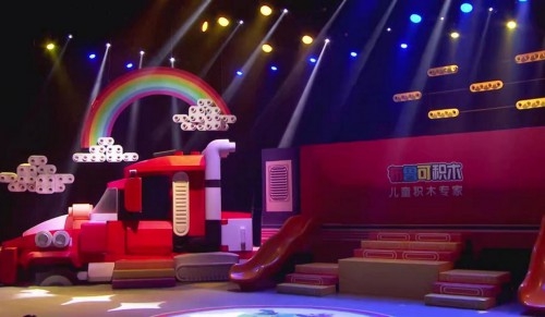 《布魯可魔法課堂》節(jié)目現(xiàn)場以高飽和度的大色塊積木為元素,搭建起布魯可百變重型卡車造型樂園,配合燈光設(shè)計(jì),給嘉賓以及屏幕前的觀眾帶來沉浸式體驗(yàn)。在這座布魯可樂園里,育兒專家設(shè)置了趣味性超強(qiáng)的親子益智游戲,而嘉賓會(huì)帶領(lǐng)萌娃不斷解題,通過高效互動(dòng)解決了各種育兒難題。