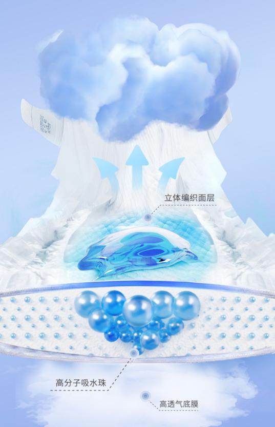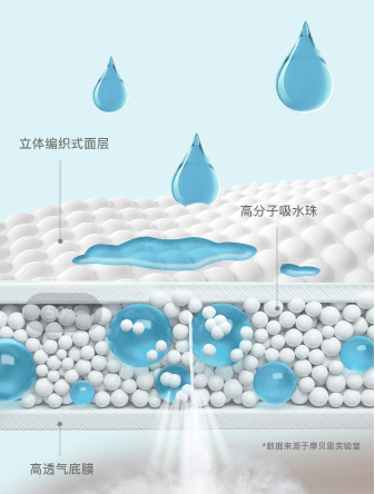 浮層式導(dǎo)流層,雙層雙梳理,摩貝恩紙尿褲創(chuàng)新采用超聲波立體成型復(fù)合工藝,不破壞纖維原有結(jié)構(gòu),面層觸感更加柔軟細(xì)膩;同時(shí)有效將尿液迅猛導(dǎo)流滲透,掐秒表都來不及的導(dǎo)流滲透速度,使紙尿褲表面柔軟舒適超干爽,不給細(xì)菌留潮濕滋生環(huán)境;另外摩貝恩紙尿褲采用的Plus級(jí)海量瞬吸芯體,海量吸收并深鎖尿液,最大吸水量達(dá)642ml,一片摩貝恩紙尿褲能接寶寶7次尿量,一整晚不換屁屁也依然干爽。