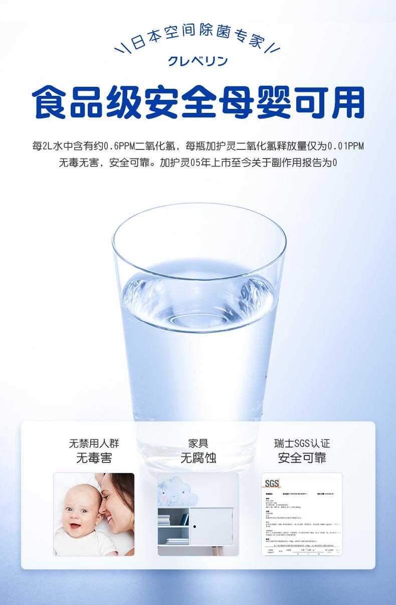 加護(hù)靈,是近年來(lái)風(fēng)靡日本市場(chǎng)的空間除菌緩釋劑,其主要成分是二氧化氯。二氧化氯是國(guó)際公認(rèn)的安全除菌劑之一,被廣泛運(yùn)用到多個(gè)除菌領(lǐng)域。加護(hù)靈以其低濃度成分、高超的緩釋技術(shù)來(lái)控制二氧化氯的除菌過(guò)程,整個(gè)除菌過(guò)程中通過(guò)破壞細(xì)菌中的氨基酸結(jié)構(gòu)來(lái)達(dá)到細(xì)菌的目的。而針對(duì)甲醛、TVOC等物質(zhì),加護(hù)靈中的二氧化氯可以直接與其發(fā)生化合反應(yīng),將其徹底分解為二氧化碳和水,整個(gè)除菌過(guò)程不會(huì)造成任何污染物殘留。