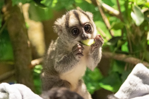 取得以上成果,離不開長(zhǎng)隆靈長(zhǎng)類研究中心多年來在育幼、保育、健康管理上的研究和實(shí)踐,如為新生的巴西夜猴寶寶“柚子”配制專屬奶粉,嚴(yán)格消毒把控食品安全,定期輪換菜單促進(jìn)營(yíng)養(yǎng)均衡,準(zhǔn)確設(shè)置環(huán)境溫度濕度參數(shù)等等,讓來自遠(yuǎn)方的夜猴家族在長(zhǎng)隆快樂安家。此外,為了能讓游客一睹夜猴真容并符合夜猴的作息,長(zhǎng)隆野生動(dòng)物世界特地調(diào)整了白天展出館舍的環(huán)境,通過光線遮擋布置,盡可能還原它們?cè)谝巴獾牡土炼壤涔猸h(huán)境。