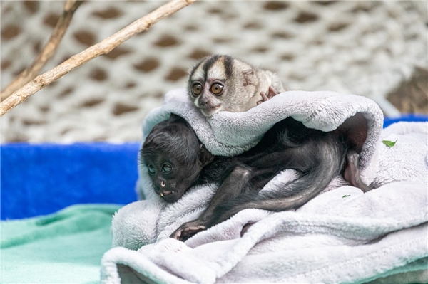 同時,針對黑叢尾猴群居性動物的特性,長隆保育團隊將一只年齡相仿的巴西夜猴與叢叢一起飼養(yǎng),小猴子們可以提前熟悉群體生活。有趣的是,因為黑叢尾猴性格靦腆、膽子小,所以總是巴西夜猴趴在叢叢的背上主動與它玩耍。