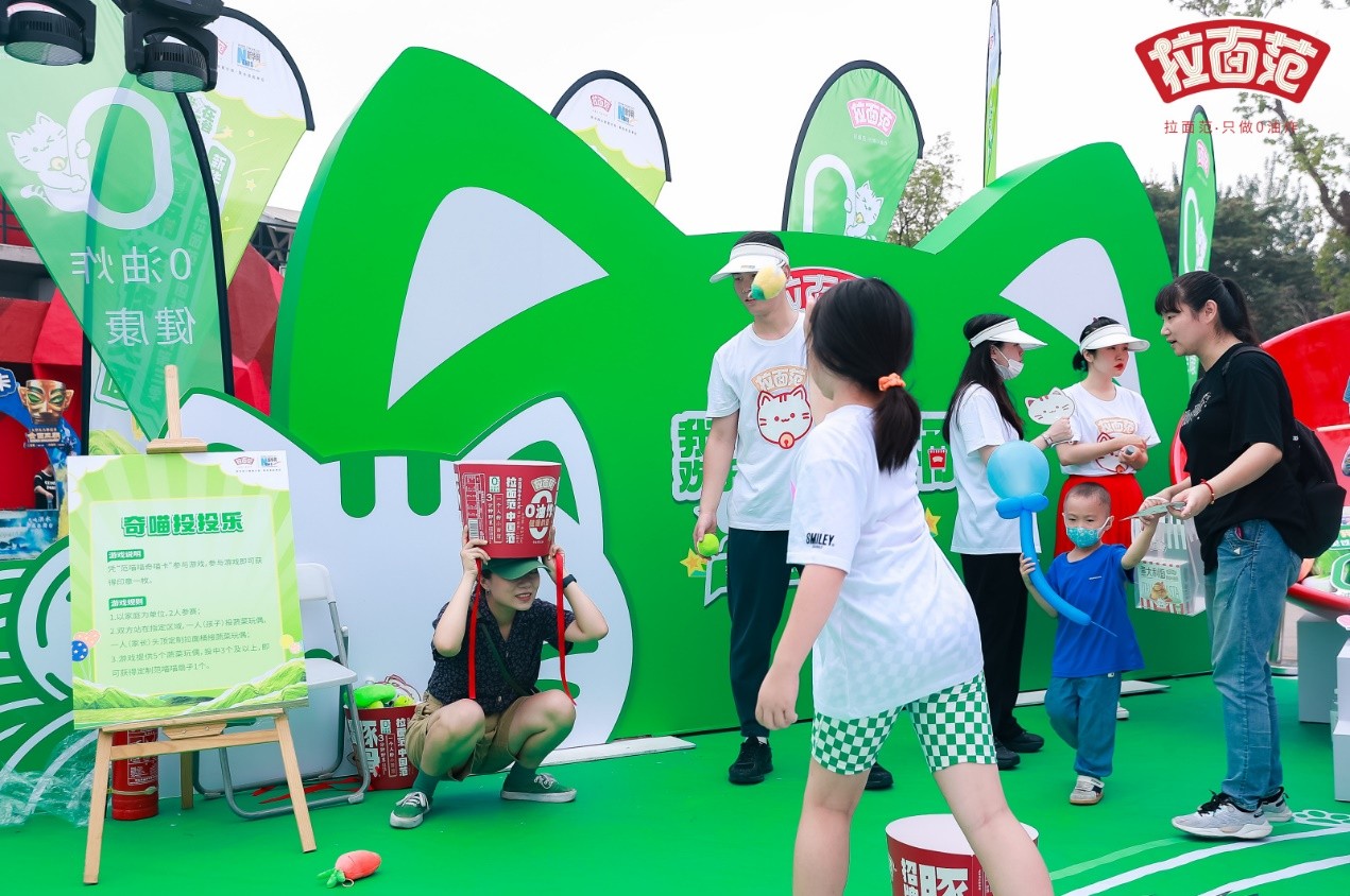 除了科普講解,活動(dòng)現(xiàn)場(chǎng)設(shè)置了拉面范系列“奇喵”活動(dòng)裝置,讓來(lái)歡樂(lè)谷的親子家庭們可以通過(guò)游戲互動(dòng),感受更美好的親子時(shí)光。如憑“范喵喵奇喵卡”,游客可參與奇喵投投樂(lè),游戲獲勝即獲得定制禮品參與游戲互動(dòng)。家長(zhǎng)和孩子互相配合,往大面桶里投擲食材,共同制作一碗愛(ài)心拉面,現(xiàn)場(chǎng)歡聲笑語(yǔ)一片,在歡樂(lè)中感受到了勞動(dòng)的意義和快樂(lè)。