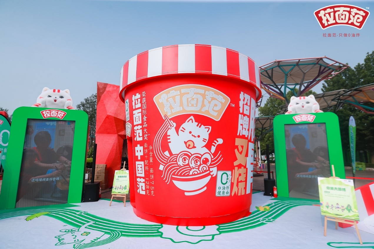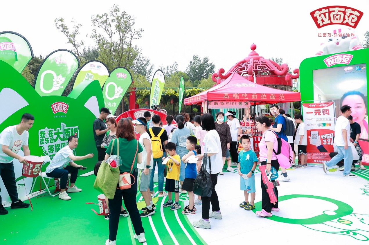 現(xiàn)場(chǎng)的拉面范的巨型面桶分外吸睛,它以小面桶為原型,等比放大數(shù)十倍,搭配“拉面范”獨(dú)有的品牌標(biāo)識(shí),使其成為北京歡樂(lè)谷里的一道獨(dú)特風(fēng)景線(xiàn)。不光是外形搶眼,桶內(nèi)更是“暗藏玄機(jī)”,以趣味科普的方式講述了方便面的前世今生,以及0油炸健康面拉面范從麥田到餐桌的誕生過(guò)程。隨著講解員深入淺出的介紹,無(wú)數(shù)親子家庭加深了對(duì)拉面范0油炸健康面的認(rèn)知和喜愛(ài),為京城暑期的親子時(shí)光增添了別樣的意義。