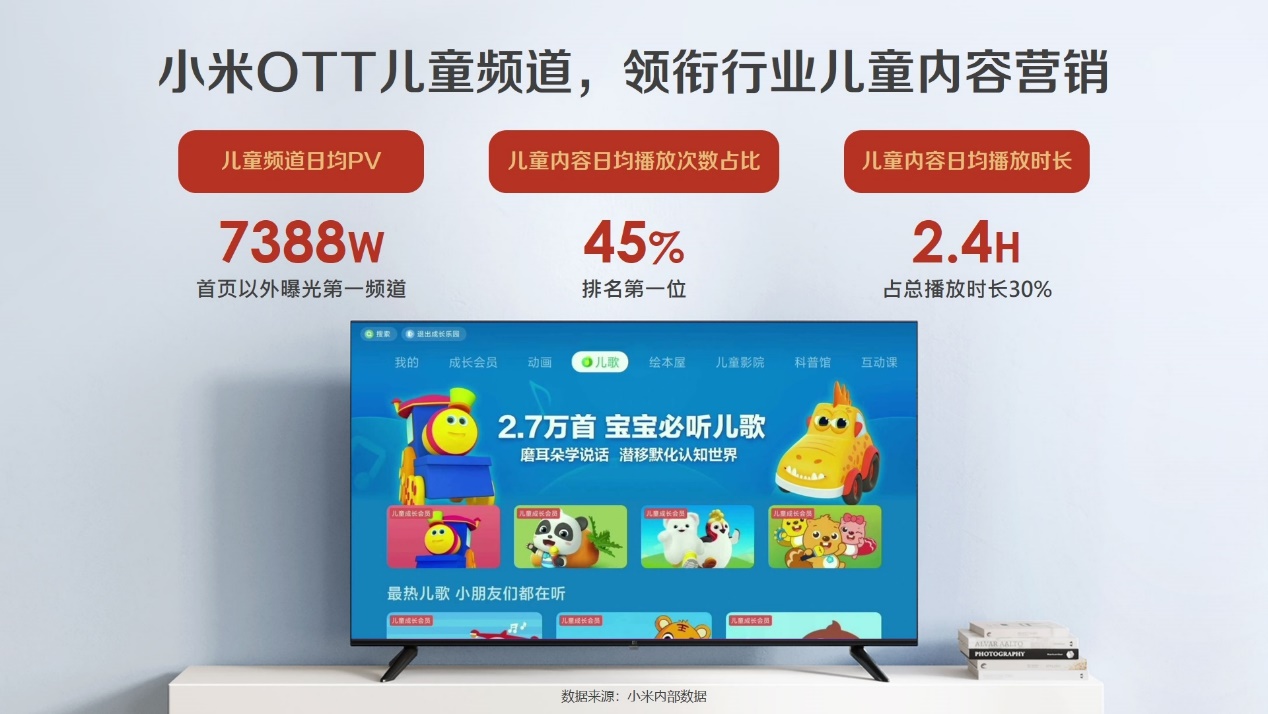 作為兒童內(nèi)容營(yíng)銷的佼佼者,小米OTT匯聚了超過13000個(gè)兒童在線節(jié)目、7500多部動(dòng)畫片和27000多首兒歌,為家庭提供了豐富多樣的娛樂選擇。憑借對(duì)內(nèi)容生態(tài)的精心建設(shè),小米OTT成功吸引了眾多家庭用戶,成為他們不可或缺的親子陪伴伙伴。
