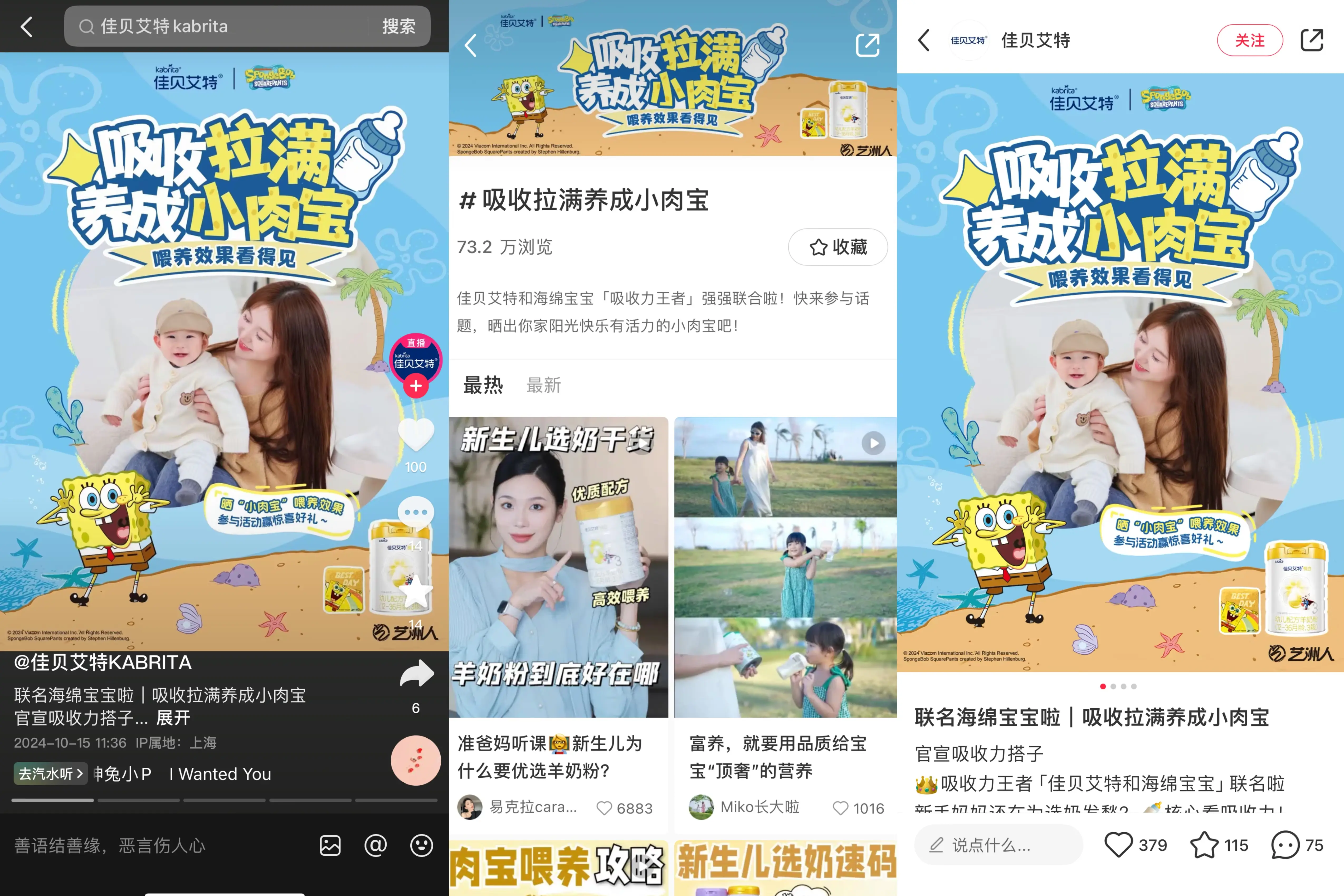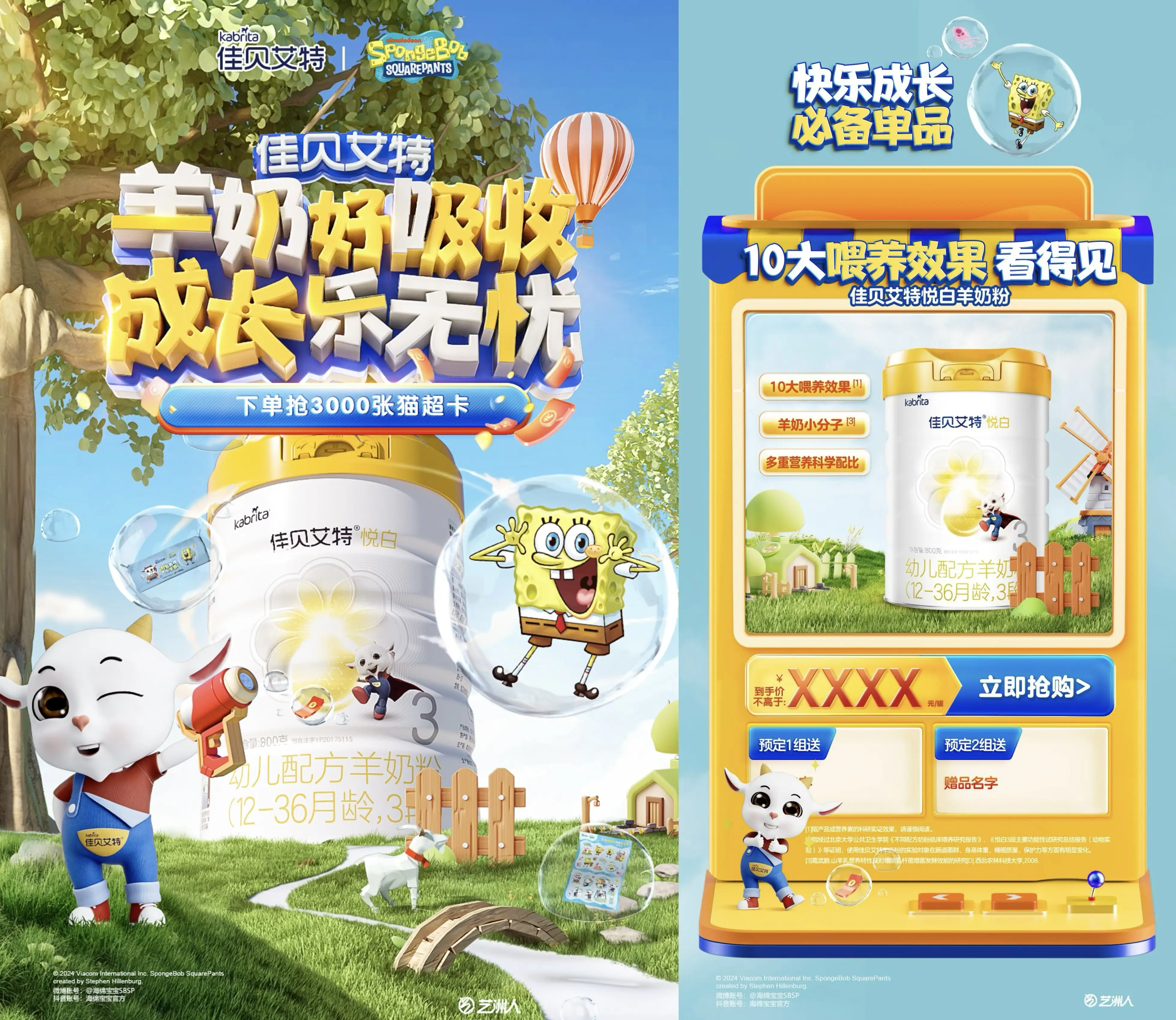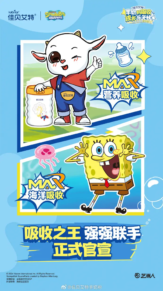 正如本次跨界合作主題“羊奶好吸收,成長樂無憂”,海綿寶寶在觀眾心目中,長期保持著快樂向上的可愛角色形象;而當(dāng)代父母育兒觀念也發(fā)生了改變,在關(guān)注寶寶營養(yǎng)好身體棒棒同時,育兒主打一個快樂松弛;兩者與佳貝艾特所倡導(dǎo)的快樂育兒的理念不謀而合,旨在通過“吸收好,營養(yǎng)更好”的羊奶粉幫助孩子健康快樂成長。