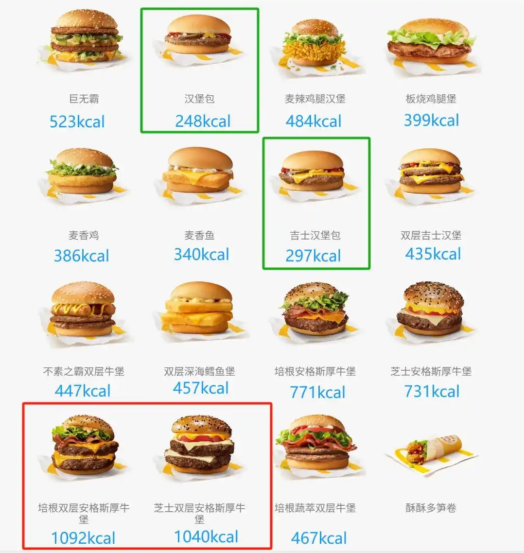 由此可見(jiàn),只要我們?cè)谶x漢堡的時(shí)候,盡量避開(kāi)油炸肉餅款、肉餅加量款、醬料十足款,就基本可以控制住當(dāng)餐的熱量,這可比點(diǎn)一份蓋澆飯的熱量低多了。