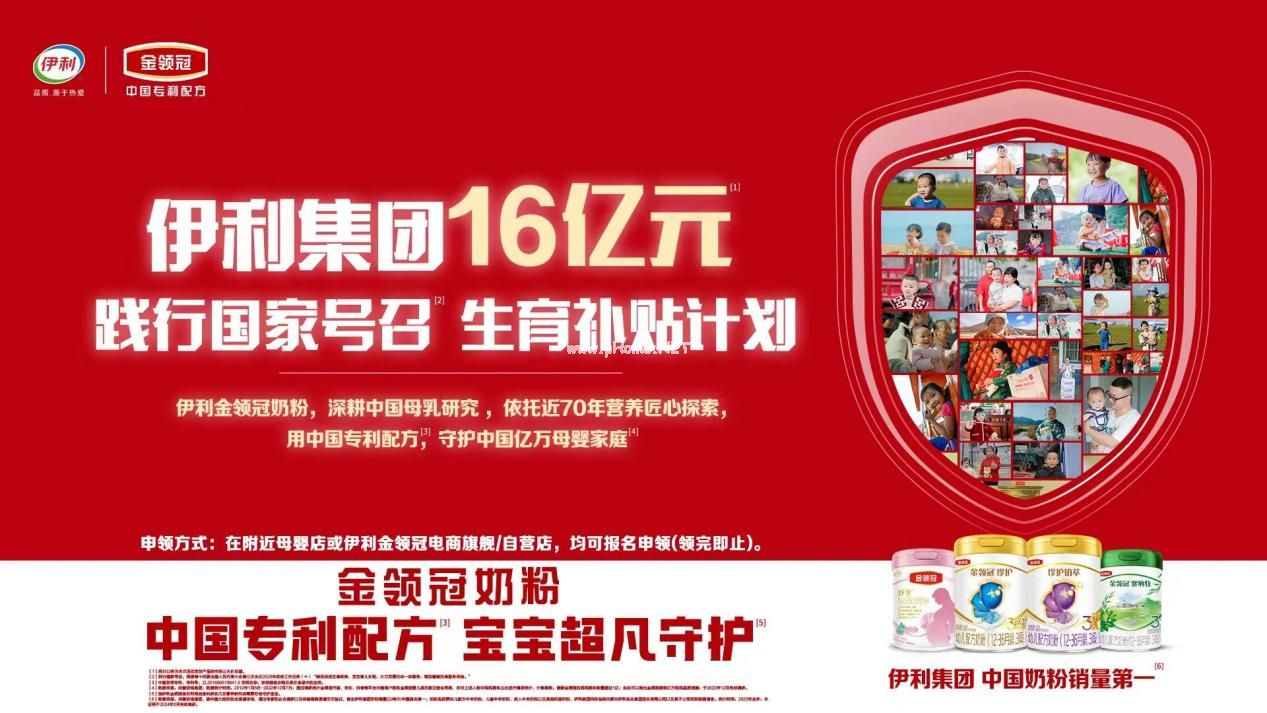 同時(shí)在國家政策驅(qū)動(dòng)、地方接連出臺(tái)鼓勵(lì)生育政策的社會(huì)背景下,伊利集團(tuán)迅速響應(yīng)國家號(hào)召,在行業(yè)內(nèi)率先開啟"16億元生育補(bǔ)貼計(jì)劃",聚焦給中國母嬰家庭帶來全方位的科學(xué)養(yǎng)育支持。該計(jì)劃不僅為全國范圍內(nèi)符合條件的孕期家庭提供不少于1600元的營(yíng)養(yǎng)補(bǔ)貼,同時(shí)還提供多款孕養(yǎng)期免費(fèi)營(yíng)養(yǎng)產(chǎn)品,其中包括了金領(lǐng)冠珍護(hù)鉑萃、金領(lǐng)冠珍護(hù)、金領(lǐng)冠塞納牧、金領(lǐng)冠悠滋小羊舒享、金領(lǐng)冠菁蘊(yùn)、金領(lǐng)冠菁蘊(yùn)有機(jī)等多款“明星單品”,能夠滿足不同寶寶的精細(xì)化營(yíng)養(yǎng)需求,并有孕期健康管理服務(wù)、定制化知識(shí)服務(wù)等12大項(xiàng)育兒權(quán)益,全方位助力父母科學(xué)養(yǎng)育。截至目前該項(xiàng)目已有超50萬人次申領(lǐng)成功。
