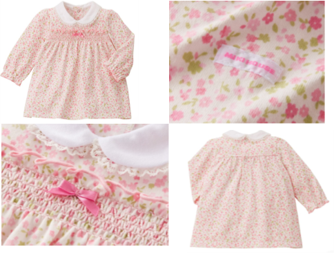 櫻花粉碎花連衣裙,材質(zhì)采用了透氣性較好的針織棉。天氣回暖的時(shí)候,推薦搭配嬰兒短褲或緊身褲,妥妥的溫柔少女風(fēng)格。