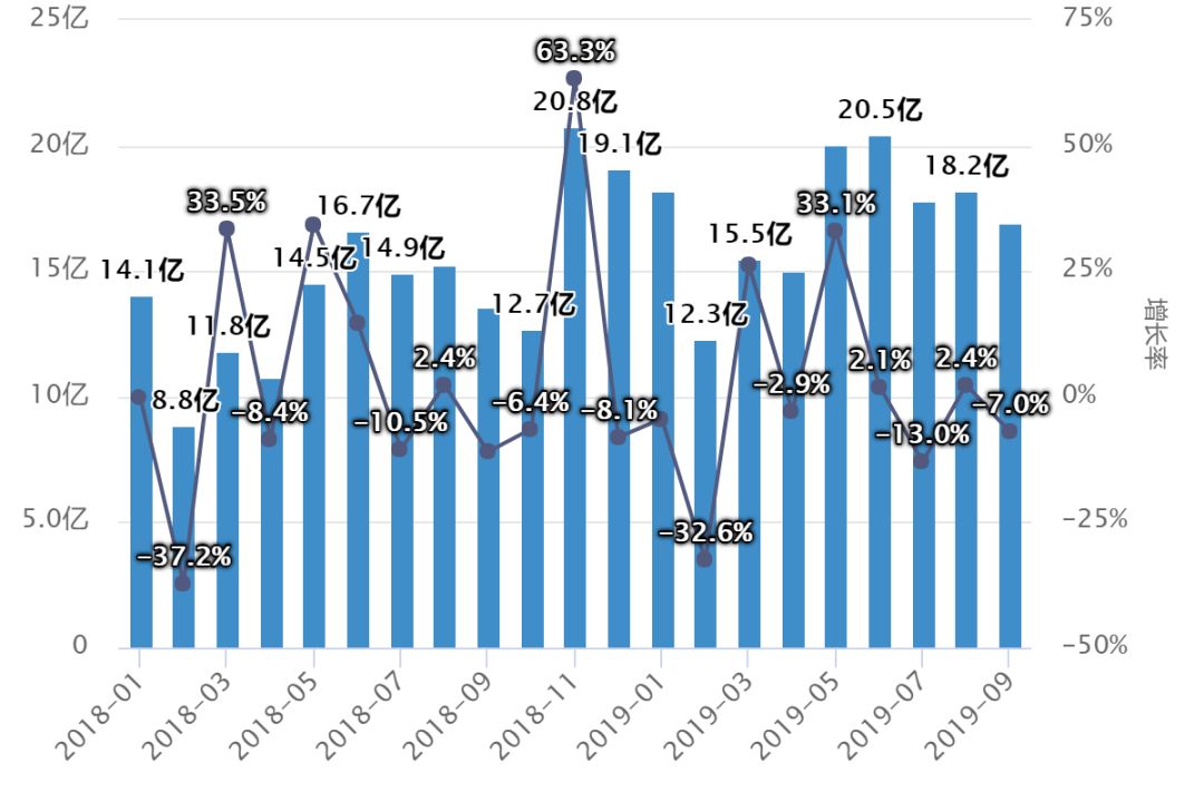 導讀:據ECdataway數據威最新數據顯示:2019年截至9月份,綜合天貓、京東、考拉、蘇寧、聚國美六大電商平臺的線上銷售數據,玩具銷售額達154.6億,較2018年的120.4億增長28.4%,銷售額在2018年11月達到最高。