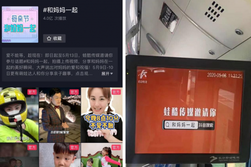 “和媽媽一起”抖音話題除了在平臺中的展示,還得到了全媒體的共同推廣,地鐵公交的移動電視、電臺主播的全城呼吁、湖南經(jīng)視的新聞報道……體現(xiàn)出了媒體之間對于親情活動的融合性,也代表著抖音的傳播形式得到了大眾的認(rèn)可?;顒幼?000多位達(dá)人積極參與進(jìn)來,風(fēng)格迥異的視頻,從各個維度展示了對母親的陪伴,截至發(fā)稿日,蛙酷傳媒打造的“和媽媽一起”抖音話題已經(jīng)突破4億次播放。