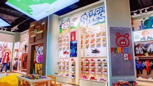 (鞋類(lèi)貨品區(qū)——樂(lè)高玩具墻、積木桌、智能化鞋類(lèi)溯源設(shè)備)