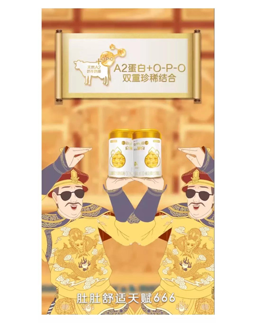最近,一首抖音神曲走紅媽媽圈,據說聽過的媽媽,都可以和寶寶一覺睡到自然醒。在視頻開篇,通過小皇子哭鬧365日吸引了媽媽們的注意力,為了解決小皇子哭鬧問題皇上命萬國進獻珍品,其中以愛爾蘭為小皇子進貢的啟賦atwo大金罐的高顏值吸引了皇上的眼光。在包裝設計上,金色是啟賦Atwo大金罐的主色調,金罐設計和金色包裝,寓意著產品無論從奶源、技術、營養(yǎng)到形象都追求者皇家般的品味。