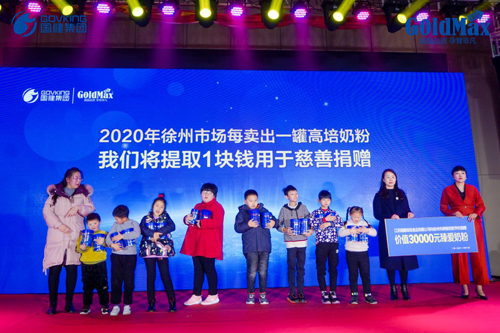 確實(shí),江蘇國(guó)健今天取得的成功碩果離不開(kāi)在場(chǎng)全體合作伙伴的支持與努力,但也同樣離不開(kāi)消費(fèi)者對(duì)高培的認(rèn)可與信賴。江蘇國(guó)健深知取之于社會(huì),用之于社會(huì)的責(zé)任感,在感謝會(huì)現(xiàn)場(chǎng)向徐州市牌樓培智學(xué)校捐贈(zèng)了價(jià)值3萬(wàn)元的高培臻愛(ài)奶粉,江蘇國(guó)健總經(jīng)理沈紅霞女士表示,2020年徐州市場(chǎng)每賣出一罐高培奶粉將會(huì)捐贈(zèng)一元錢(qián)用于慈善捐贈(zèng),讓更多困境中的人感受到慈善的溫暖。