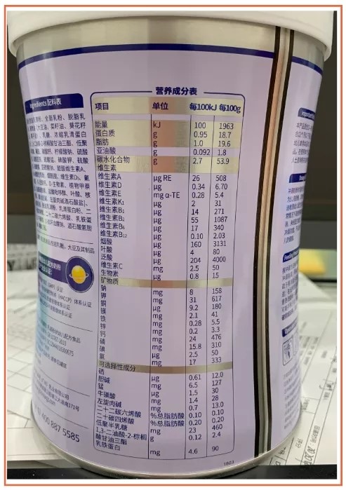 可選擇成分包括常規(guī)強(qiáng)化配方和特色強(qiáng)化配方。高培迪唯恩3段添加了硒、錳、膽堿、?;撬?、左旋肉堿、DHA、ARA、低聚半乳糖、OPO、乳鐵蛋白等10種營(yíng)養(yǎng)素。