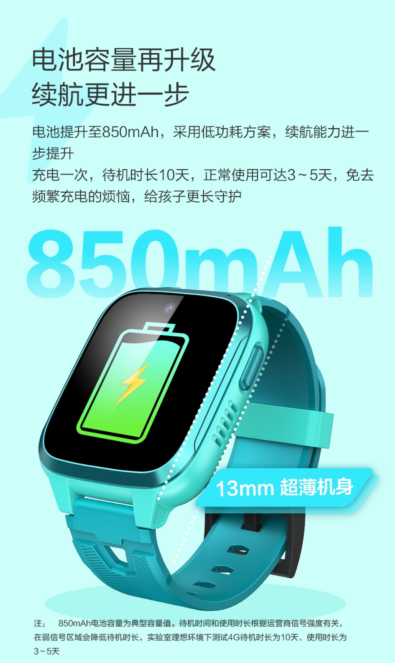 外觀足夠出色,配置也毫不遜色。360兒童手表8XS還具備850mAh的超大電池容量,采用低功耗方案,使續(xù)航能力進一步提升。充電一次,待機最長可達10天;正常使用可達到3至5天;免去頻繁充電煩惱,給孩子更長守護,讓孩子在外肆意玩耍,家長無需因電量消耗過快而擔(dān)憂。實際上,這樣出色的續(xù)航能力,就是長假外出使用,估計也是綽綽有余的。