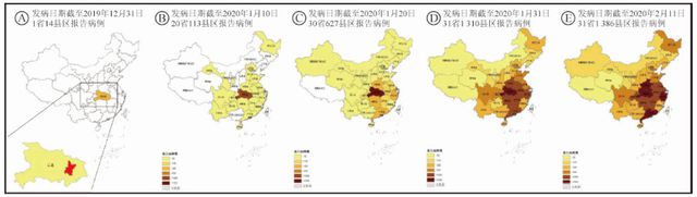 報告通過對報告病例的發(fā)病日期進(jìn)行回顧性分析,還原了新冠肺炎確診病例在5個不同時段全國地理分布變化情況。