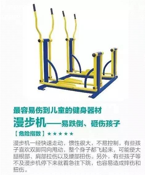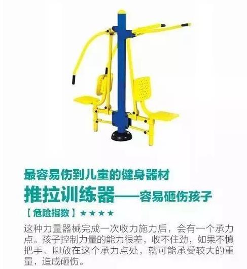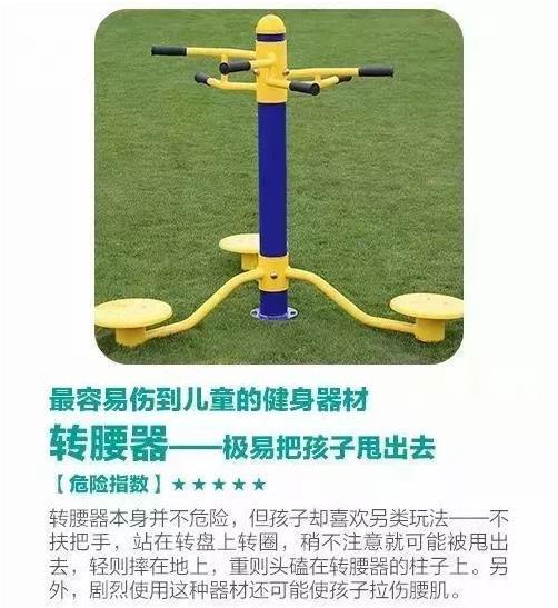 在很多社區(qū)擺放了健身器材,它們?yōu)槭忻竦慕∩?、娛樂活動提供了便利,但稍不注意,它們就會變成我們身邊的隱形“殺手”!每到下午幼兒園放學(xué)或是周末,小區(qū)的健身廣場上簡直比公園都熱鬧,經(jīng)常一個健身器材上面,能“掛”3、4個孩子。有些四五歲的孩子,根本沒有家長看護(hù),就能自己把每個器材玩出各種高難度姿勢,還有一些年齡很小的寶寶,路還走不穩(wěn),就被媽媽扶上了健身器材,甚至是努力自己爬上去。雖然很多人都知道這些健身器材不是給小孩子用的,可能會存在一些危險,但大家好像對此都不太在意!