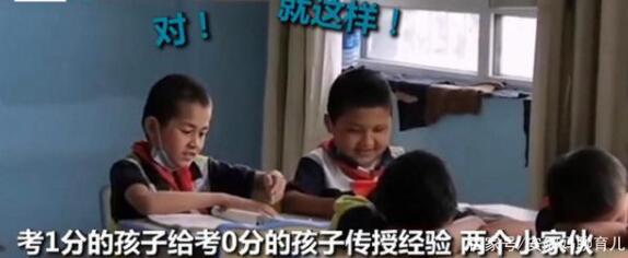 考1分的孩子給考0分的孩子傳授經(jīng)驗,兩個可愛的小家伙一個敢教一個敢學。
