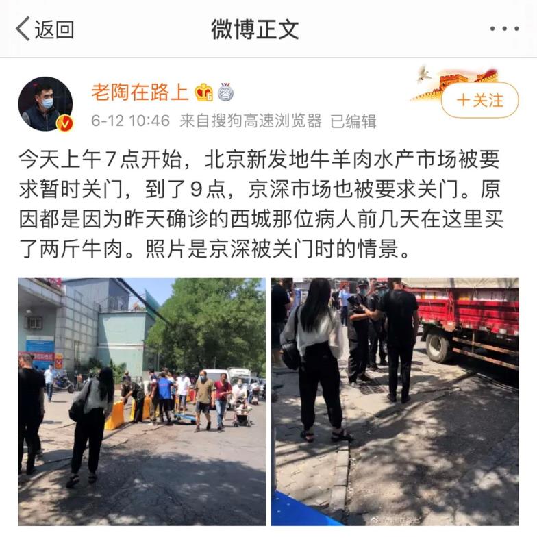 6月12日,親貝網(wǎng)小編了解到,今日北京確診的一例新冠肺炎病例的活動軌跡,包括北京新發(fā)地牛羊肉交易大廳。目前,新發(fā)地牛羊肉交易大廳已停業(yè),正在對大廳場所進行環(huán)境的采樣和檢測。目前,包括大廳內(nèi)商戶、顧客在內(nèi)的所有人員已進行了核酸檢測。