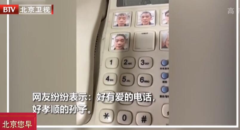 為了讓80多歲的奶奶打電話方便,孫子給奶奶的固定電話一鍵撥號(hào)的按鍵上貼上了奶奶的四個(gè)兒子和一個(gè)妹妹的照片,只需要點(diǎn)一下照片就可以撥過(guò)去了,感嘆孫子的孝心和感動(dòng)。