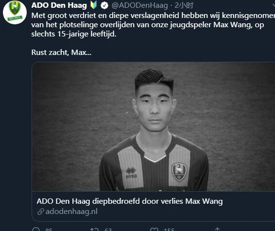 根據(jù)海牙官方訃告描述,他們對王凱冉的去世感到惋惜和震驚,不過,海牙俱樂部病沒有透露王凱冉去世具體的原因。然而,荷蘭媒體推測,他們認(rèn)為王凱冉是在一次溺水事故當(dāng)中不幸失去生命的,而他去世的時間,大概是在今年的8月初。
